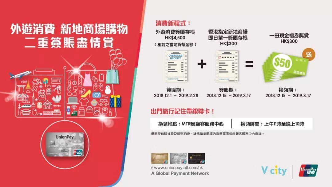 外游+本地签帐可换领HK$300一田礼券