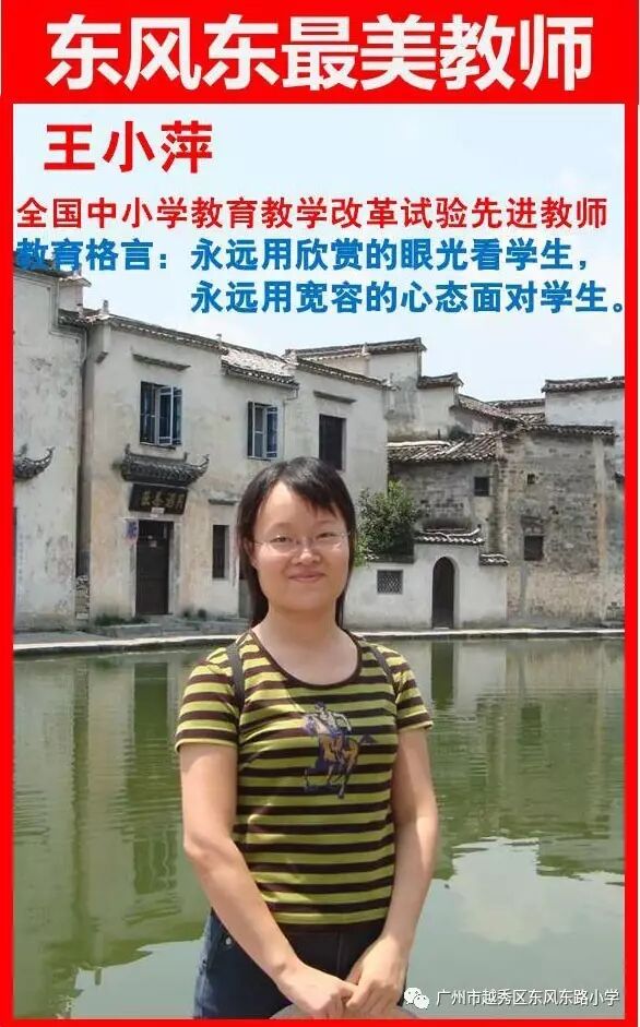 王小萍老师,广州市班主任协会委员,广州市优秀班主任,全国中小学教育教学改革试验先进教师。她参与了全国教学改革试验研究,多次承担区级以上的公开课,获得好评和奖项。其中《春晓》课例在全国教改试验会议上进行展示。《威尼斯的小艇》获得广州市语文教学研究成果一等奖。《黄山奇石》跨越式综合课例,获全国综合课例评比一等奖。受邀参与了试验教材的编写,撰写了多篇论文,《小学语文“四结合”教改初探》、《在阅读教学中利用多媒体技术培养学生的质疑能力》、《利用网络追求优质的课堂协作学习》、《新课标下的优质教育》等论文获奖或在教育刊物上发表。辅导学生参加全国省市各类比赛均获一等奖,获得广州市越秀区人民政府嘉奖。
