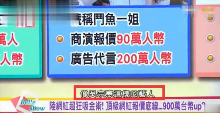 该节目上主持人介绍陈一发时,表示其商演价格90W,广告代言200W起,这个数据报价真的有点吓人,而且该主持人还表示就连台湾的著名主持人吴宗宪在国内的出场报价都没有这么高。