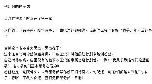 粉丝嘛,能为偶像花钱就开心,怎么可能会错过接近偶像家人的机会呢,然后粉丝就纷纷跑到梅花饺子馆给人家免费打工或者送客流量,结果,你们自己看去过的粉丝叙述: