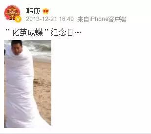 而且13年的时候他还发过一条这样的微博,内容是化茧成蝶纪念日,而发这条微博的日期正好是他离开公司一周年的日子。