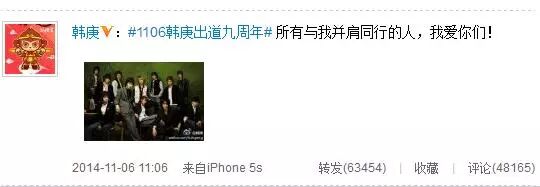 现在去韩庚微博还能看到他道歉的那条微博在热门第一条呢。