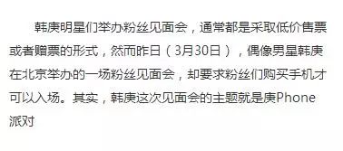 而且当年连举行粉丝见面会,甚至要求粉丝要买庚phone才能进场,我的天呐,这要是我爱豆我真的要直接把手机砸他脑门了,我知道追星就是花钱,我喜欢你我也就是想给你花钱,但你不能用这种恶心的方式强制我给你花钱啊!