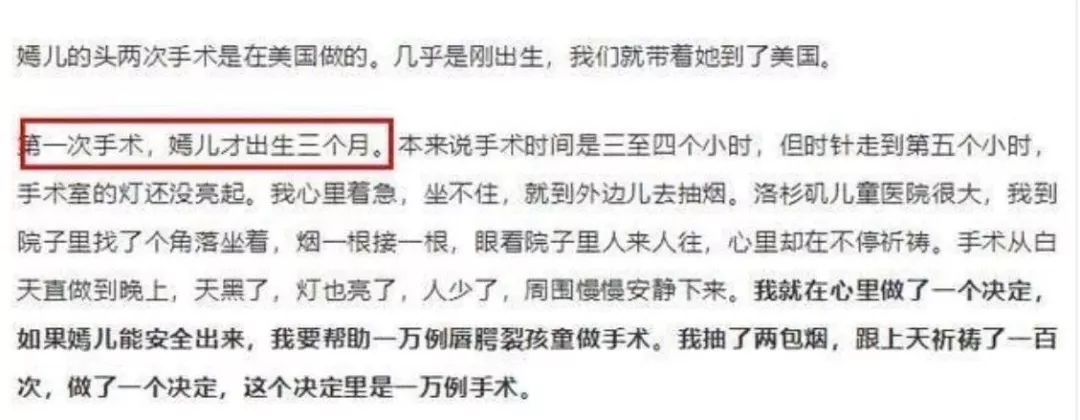 刚出生3个月时,李嫣就进行了首次整形手术,手术进行了将近5个小时。