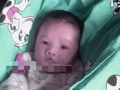李嫣刚刚出生的时候,唇腭裂是很严重的,看这张照片可以很清楚的看到嘴唇的状态。