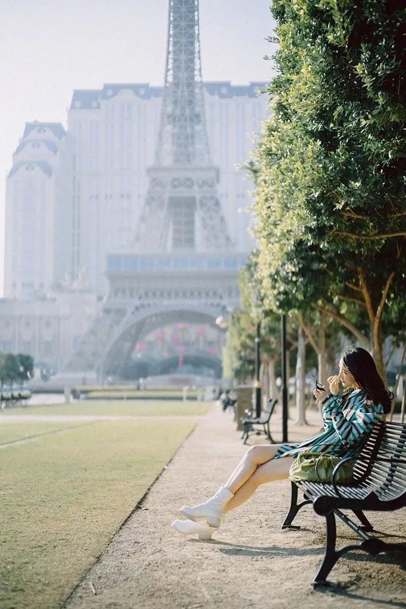 她去过英国,在街边的咖啡馆慵懒地晒着太阳。