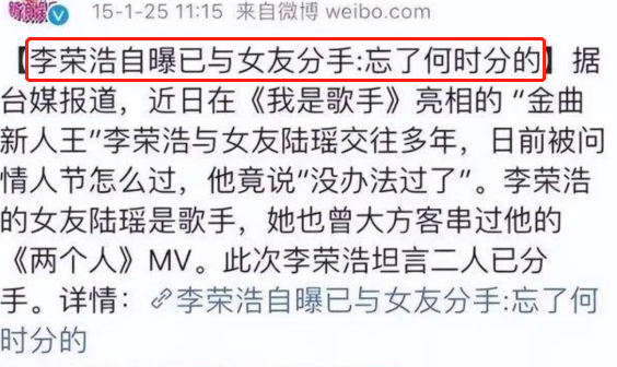 可惜的是,她陪李荣浩走过籍籍无名。李荣浩却在名声鹊起时,转身离她远去。