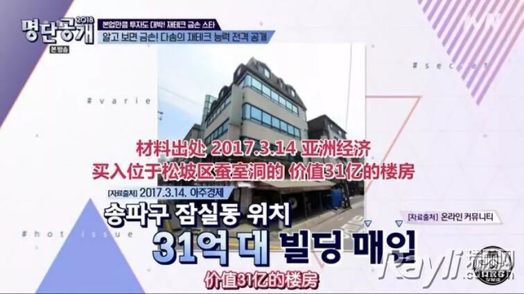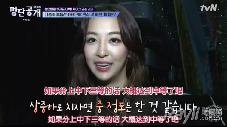 韩胜妍最厉害的是不动产,她今年不过31岁,非常年轻,但不动产已经有三栋了。