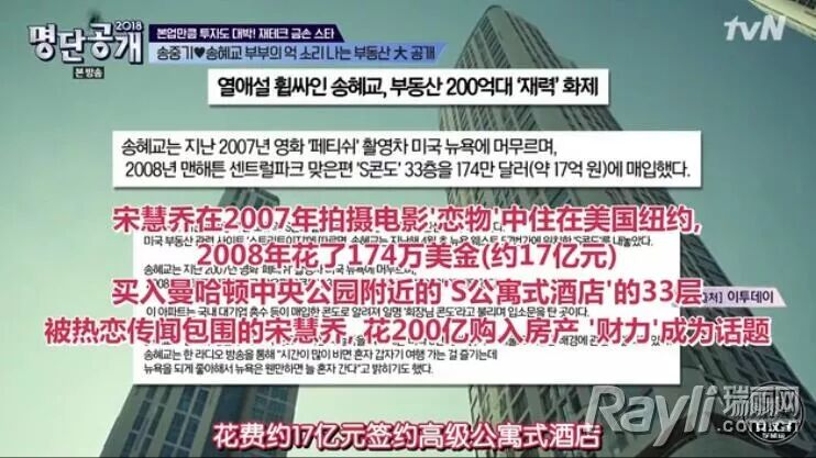当然,还包括海外的不动产,08年为了拍摄电影,在访问纽约曼哈顿的时候,乔妹相当豪爽地花了两百亿韩元,购入了一处高级式酒店公寓。