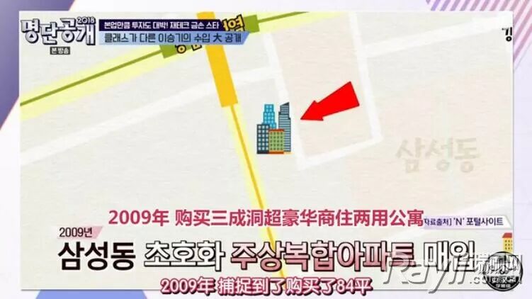 2015年在距离自己拥有三星洞住宅50米的位置。又买入了价值91亿5000万的高级住宅(换成人民币5400万啊,我天),在江南区三星洞就拥有三个不动产。
