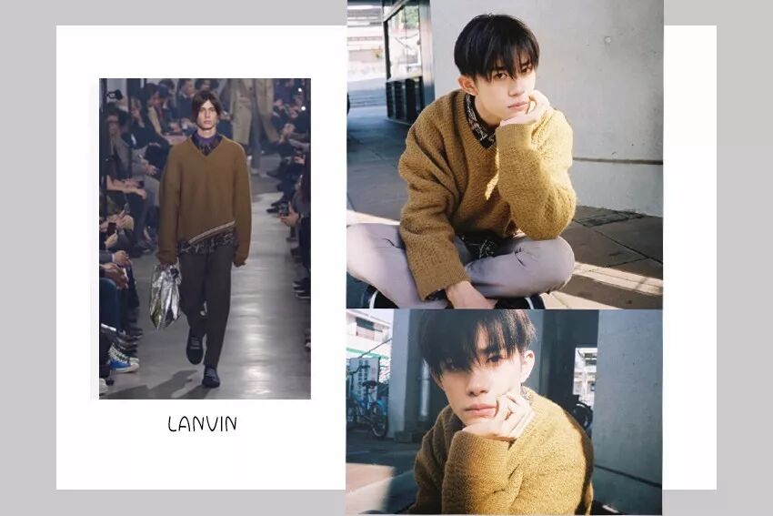 V领毛衫内搭一件碎花衬衫,易烊千玺的这种穿搭法也是带着日系少年的清爽感。