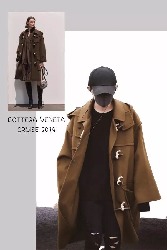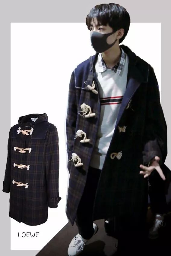 橄榄绿也是冬季常常出现的颜色,橄榄绿加上牛角扣充满了沉稳轻龄的质感。内搭上千玺弟弟最爱的破洞裤简单不失高级感。不知道怎么穿才能有气质的小伙伴,不妨学一下千玺内搭完全统一色系的感觉吧。