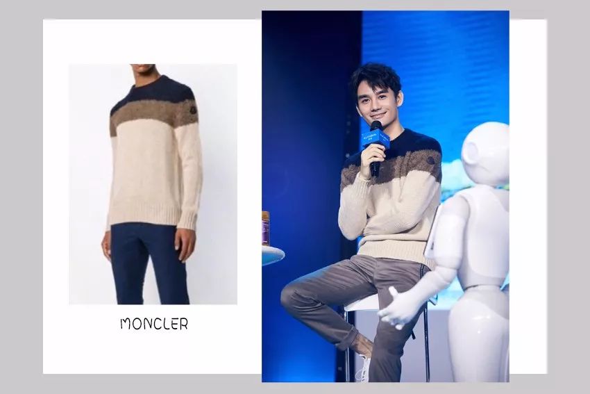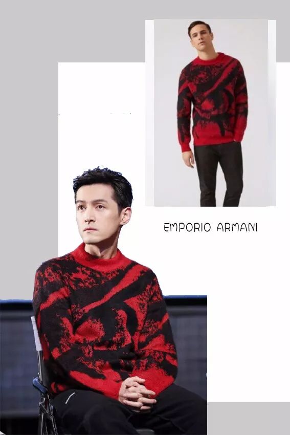 如果是本命年的小伙们,那么胡歌这家红毛衫可以get一下了。黑色与红色的交错,活泼中不乏沉稳。