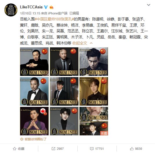 前不久, TC Candler公布了中国区百名最帅最美面孔入围名单。这长长的名单里,不乏我们都很熟悉的身影。既有顶级流量的小鲜肉也有实力不凡的老戏骨。
