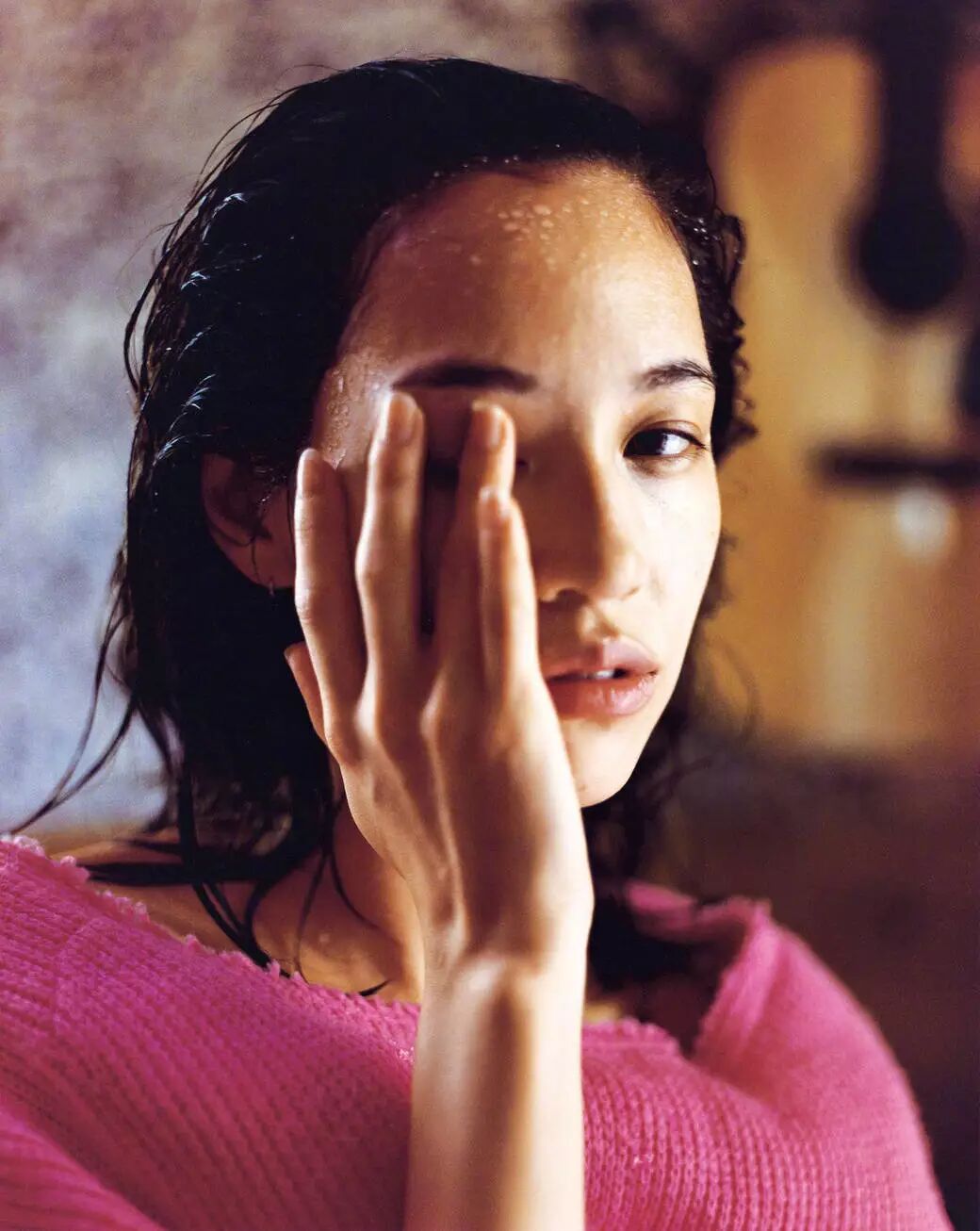 又可以在《i-D》秋冬刊中几乎素颜出镜,单手遮眼,展露出原生态的风情: