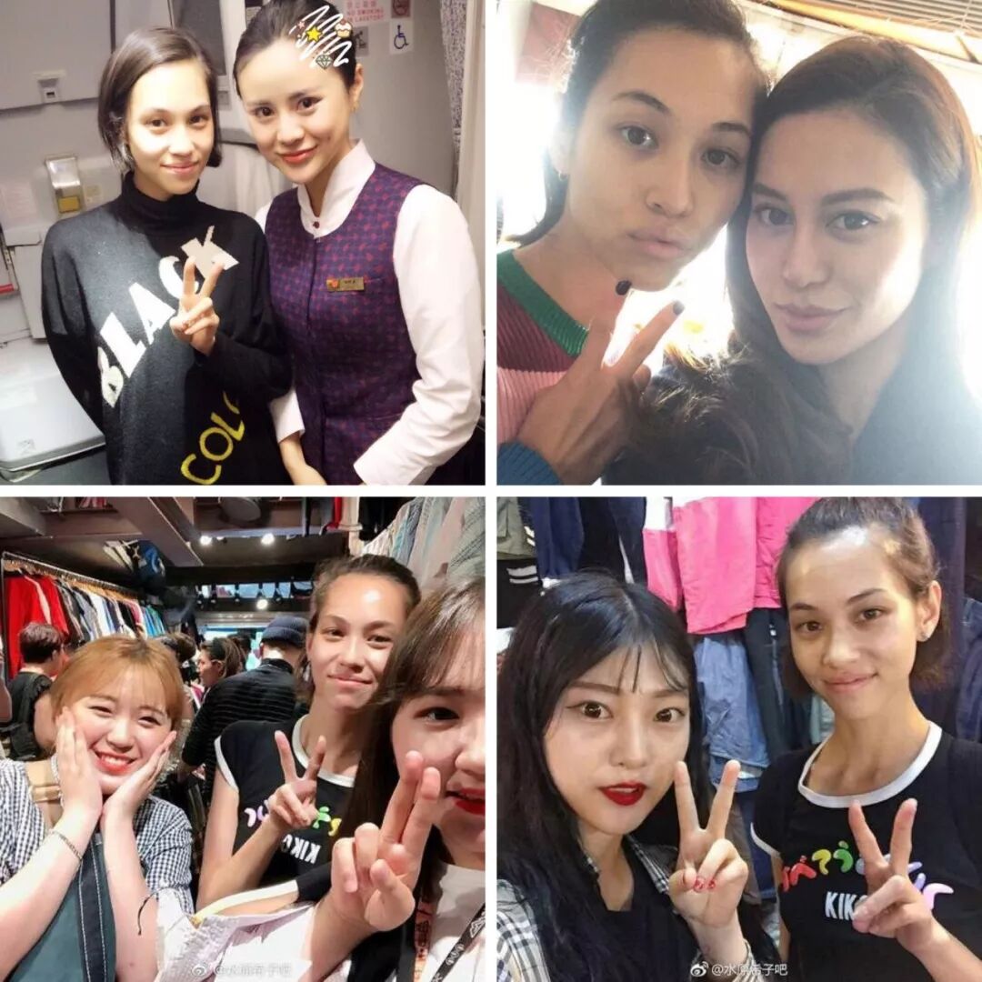 遇到想要合照的粉丝,即使自己是大素颜,也依旧是一脸笑容大方入镜。