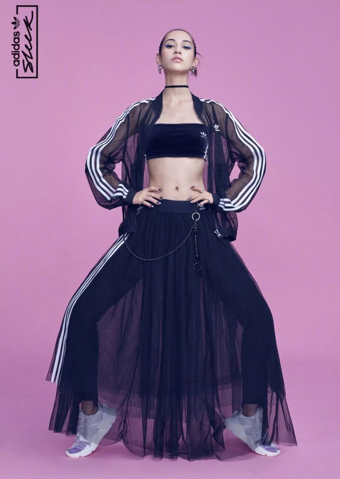 时而化身成脚踩adidas Originals运动鞋的玩酷女孩。