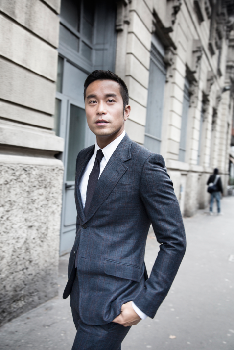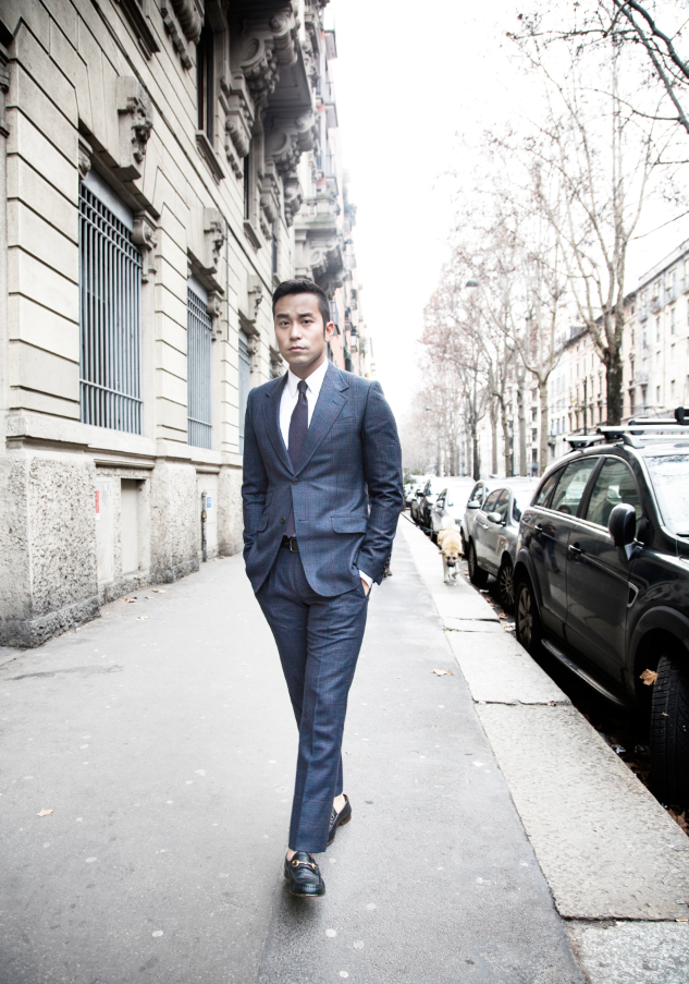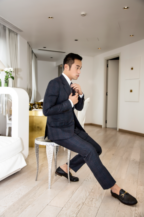 今天的米兰天气比昨天略微寒冷,腾讯时尚到达酒店的时候,张孝全正在做最后的造型,一袭深色暗纹西装加身的他英俊而绅士,脸上带着柔和的色彩。在领带的选择上,纯黑色与黑色暗格纹之间,张孝全最终选择了黑色暗格纹领带,搭配起来果然更有层次感,与西装相得益彰,点睛之笔恰到好处。
