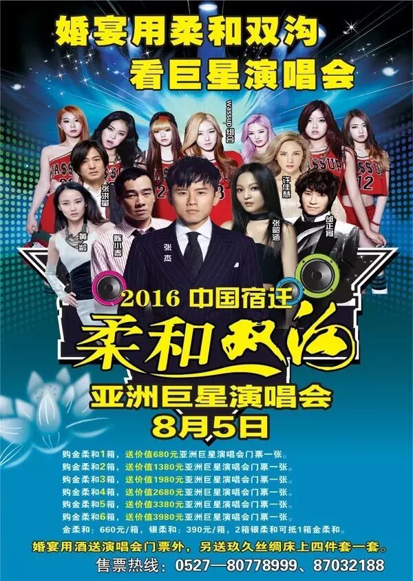 由柔和双沟独家冠名的“2016年柔和双沟亚洲巨星演唱会”将于8月5日在宿迁职业技术学院体育场震撼开唱。值此之际,柔和双沟宿迁营销中心联合宿迁日报社新媒体中心开展“你助力、我送票”微信送票活动。