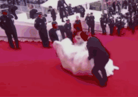 ps:裙子大到要两个男人帮忙抬才能上台阶,超浮夸!