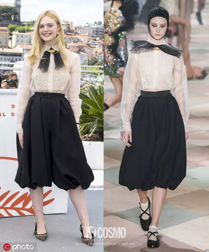 开幕盛典前,Elle Fanning还有两套小女生气息浓郁的学院风造型,可爱爆表。