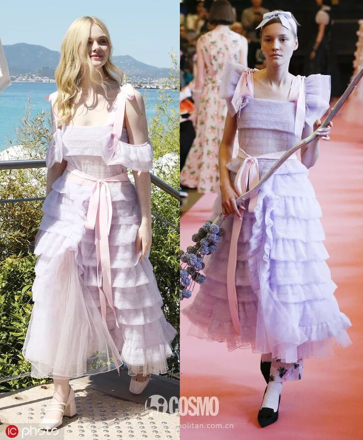 Elle Fanning身着 Gucci 定制粉色长袍礼服
