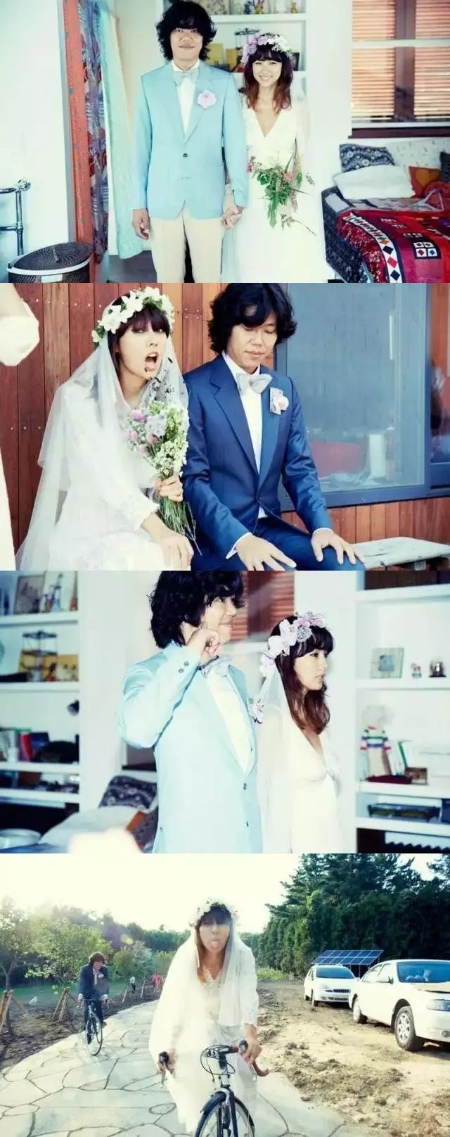 没有华贵的婚纱,没有包围的闪光灯,只有三五好友和亲戚,在温馨的济州岛小婚房中,以音乐会的形式,开了一个小型派对。李孝利在那天美的不像样,夫妻骑着自行车入场,身上戴的花都是现摘来的。