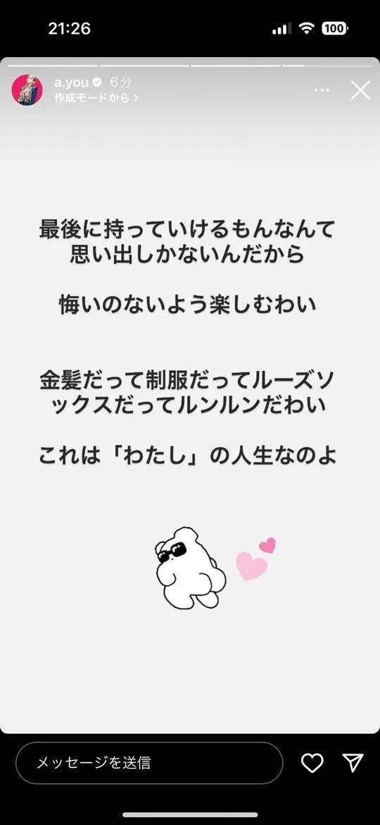 滨崎步少见罕有地竟然回覆这位歌迷:「现实是我自己在各方面都遵从我的理念和概念去做,我现在做的是自己最有真实感的事情,所以非常接受现在的自己。你的评论很好笑,但是我也非常感谢你的关心」。
