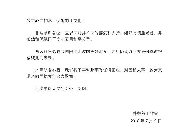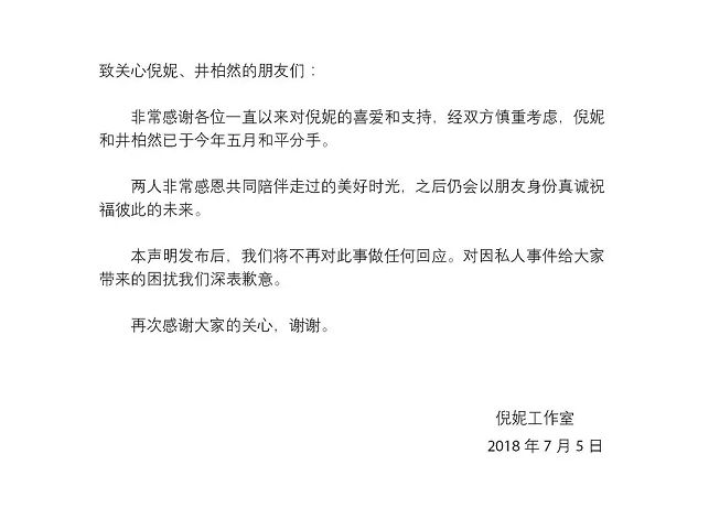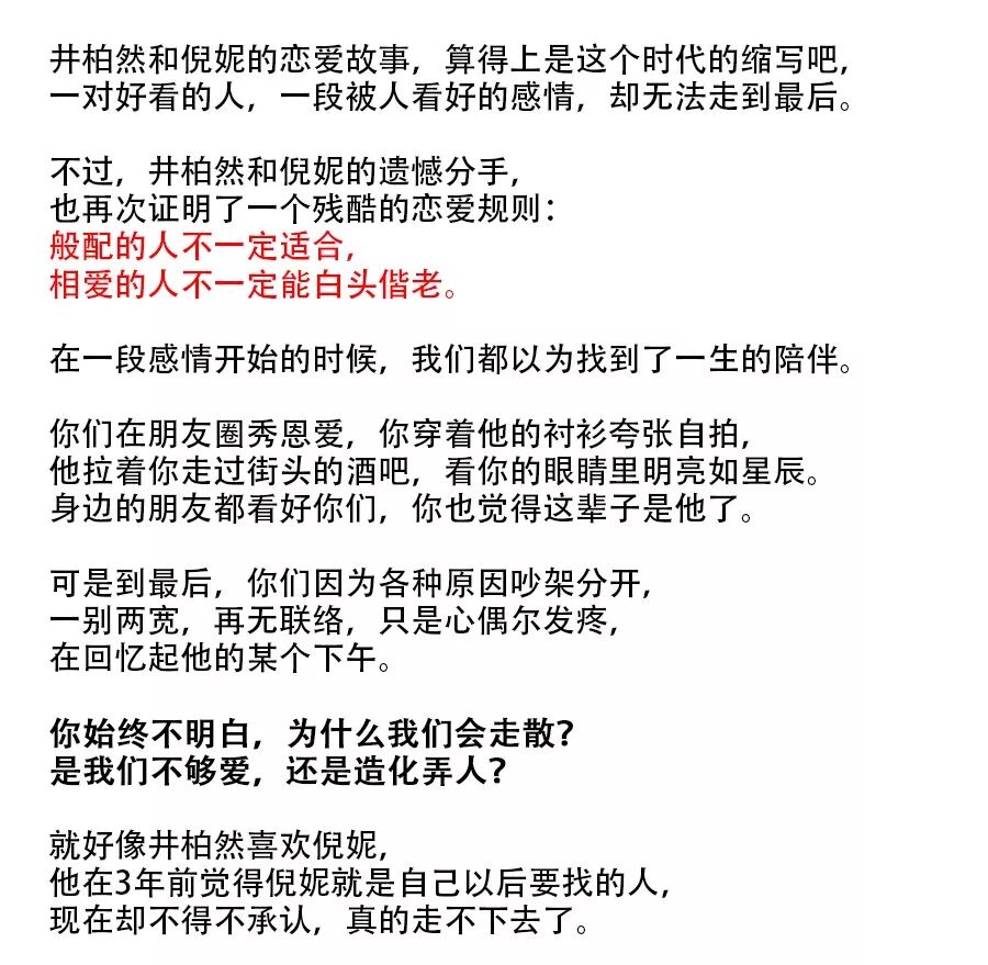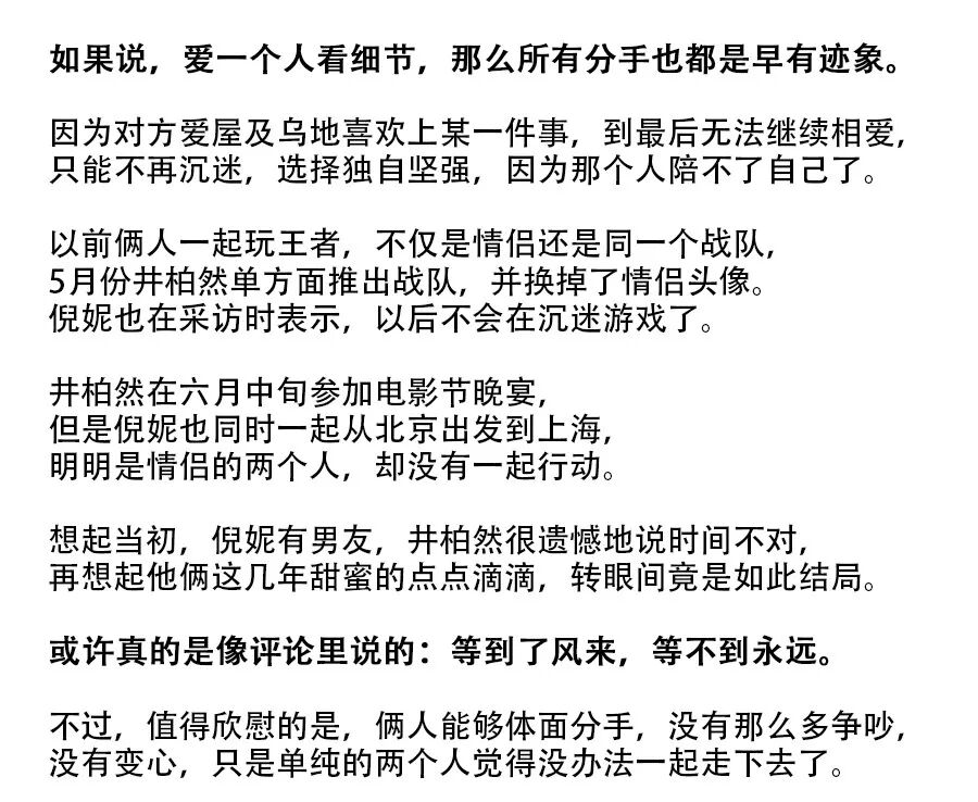 井柏然倪妮:我们为什么分手2个月后才公布? 牛牛妈全球志 内地男星 2018-08-20 18:40:14 835 创作不易,用心坚持,欢迎请BaGua喝几杯爱心咖啡!打赏并支持本文 打赏并删除本文 Chapter.1井柏然和倪妮的工作室发布分手声明,称两人已经在5月份和平分手。Chapter.2Chapter.3往期精彩《邋遢20年的老公,竟是被ta改变了,我不服!》《对象在朋友圈发了张行李箱的照片,看完照片后果然自己被绿了..》《毛孔粗大直冒油?一张面膜解决夏天80%的皮肤问题!》《杨紫秦俊杰分手:太爱一个人是会受伤的》《千万别看,七夕节总有人想骗我谈恋爱!》 创作不易,用心坚持,欢迎请BaGua喝几杯爱心咖啡!打赏并支持本文 打赏并删除本文 感谢您的支持鼓励,我会继续努力的!文章地址:用户邮箱:打赏金额:USDT 请输入数字点击”去打赏“,即可进行打赏支持本文章哦 井柏然 About the Author 牛牛妈全球志 功能介绍:牛牛妈香港商城致力于为客户从香港代购正品美妆护肤等各种产品,6年代购经验,粉丝至今7万多,遍布大江南北,值得客户信赖 Related Posts 以为朱茵、王祖贤、刘亦菲是“眼睛最美”的古装美人,没想到都输给她! 2019-01-30 19:00:25 井柏然倪妮:我们为什么分手2个月后才公布? 2018-08-20 18:40:14 发表评论