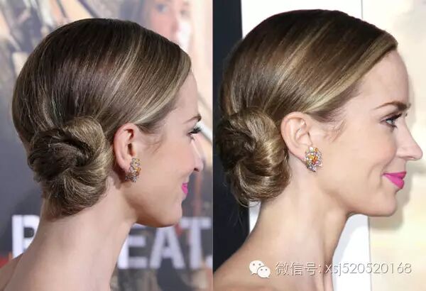 瞥一眼梳着光感发髻的Emily Blunt,嗯,成熟美人一枚。然而让发髻迈着优雅步伐划至一侧时,妥妥20+嘛!