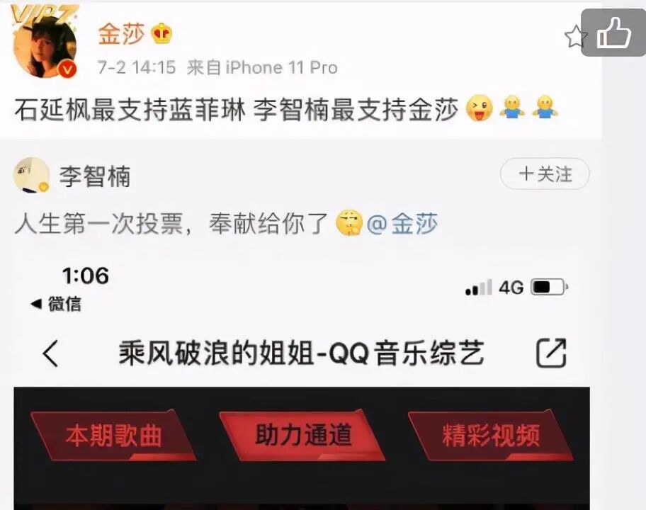 虽然金莎在《浪姐》的存在感远不如一些会搞事的姐姐,但这档节目确实也让她再度翻红,重新回到观众视野了,她现在和湖南卫视的关系很好,自然曝光就跟上来了,只是人红是非多的定律她也逃不掉,这不,最近被扒得多了,她的争议可不少,今天她与张萌、白冰录制节目,再扮回《神话》的造型,给剧迷奉上了一出回忆杀,就不乏有人吐槽金莎爱抱团。 之所以会有“抱团”这个说法,也是因为金莎上《浪姐》以来,主动与他人产生共同话题的几率颇高,比如之前参赛时,李智楠发微博给她打call,那会金莎转发说“石延枫最支持蓝菲琳,李智楠最支持金莎”,拉着“旧人”捆绑的意味很明显,然而尴尬的是,节目收官后,她莫名其妙置顶一篇微博,放话就算世界只剩两个人了,她也不会选择对方,还配图了一张说李智楠暗恋自己的文章。 而在万茜风评翻车之前,金莎也主动凑上去和她炒过cp,甚至亲自进cp群 私联 ,万茜口碑崩塌后也没下文了,还有前段时间官宣和萧亚轩一起上综艺,她努力玩小狼狗梗,都让不少观众觉得有些尴尬,反正这一来二去的,不少人就觉得金莎喜欢到处抱团蹭热度,但又情商不太高的样子~不过她算是正式立起“恨嫁”人设了,最近在综艺上相亲,与她约会的对象凭借俊朗的外表,还引发不小的关注,看似金莎也是非常满意,可惜两人最后成真的可能性不高,对方是个富二代,以他的条件不愁找对象,跑到节目里相亲,不过是为了获得名气,好给自己的生意拉投资,与节目组那边也是签了合约,甚至有一些台词都是设计好的,大家看看就算了。