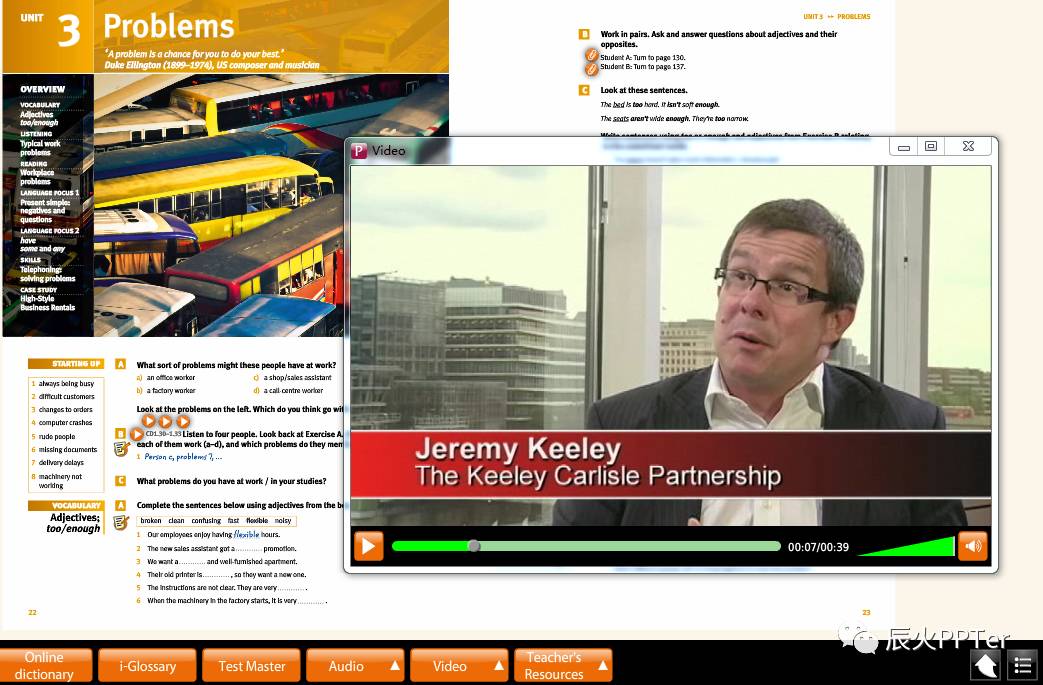 亮点二: 配备资源丰富的Active Teach多媒体教学,试听材料均由英国知名广 播出版公司BBC录制