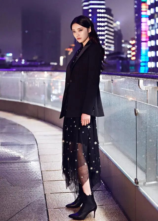 林允在穿衣搭配上超级能打,一件黑色纱裙,尽显别番风味,配上星星点点的修饰,一件浪漫的“星空裙”就出来了,超级适合在逛街时候穿,A爆全场,而且一双细高跟很好的修饰了细细的小腿,一副“小夜猫”的形象,性感又时髦。