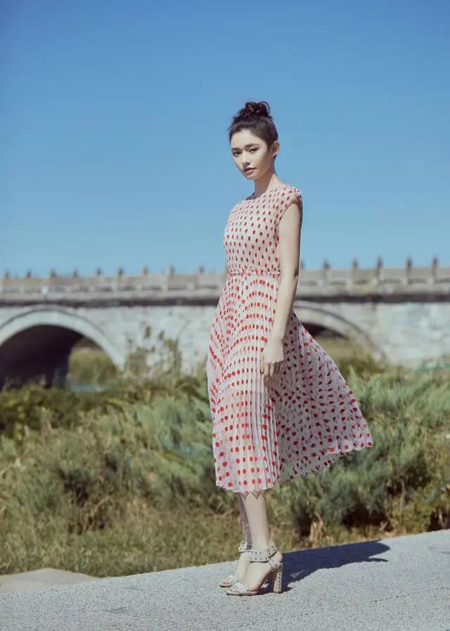 相对于大波点,小波点会更加容易驾驭,像林允波点小裙配上个丸子头,拉长了脖子的比例,而且整体的头发扎起来会显得特别的精神,而且一抹微笑,自信满满,如沐春风的样子。