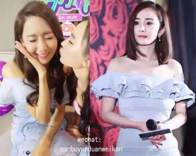 杨幂和林允儿撞衫一字抹胸裙,杨幂清爽的直发更显青春,露出锁骨更性感迷人