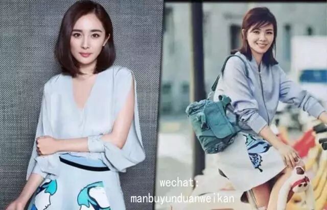 撞衫半身裙,杨幂用不规则的雪纺衫搭配时尚又性感;刘涛棒球服搭配半裙