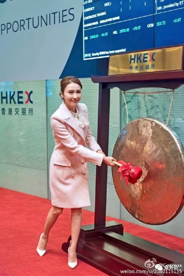 而上一次敲钟仪式,黎姿也曾以美女总裁的身份出席,穿的是一件粉色双排扣大衣。在两年前,她的身家就已接近10亿港币了。