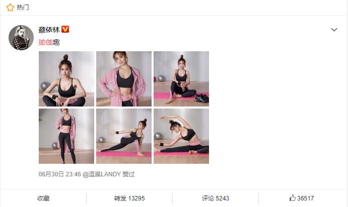 在微博上发布了一组瑜伽照