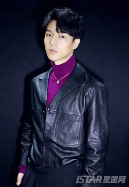 皮感外套搭配流行色高领衫的魏天浩,复古摩登,冷都男形象魅力迷人。