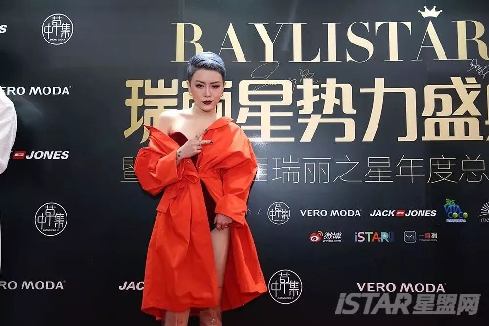 杨舒涵一袭张扬的橘色风衣不仅渲染盛典气氛更表达了新生代的潮态度。