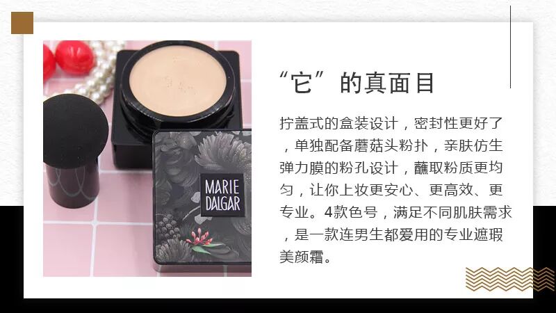 因为它配备了立体小蘑菇形状的粉扑,在上妆时可以无死角的全方位贴合肌肤轮廓,难怪徐老师只要15秒就能成功变妆!