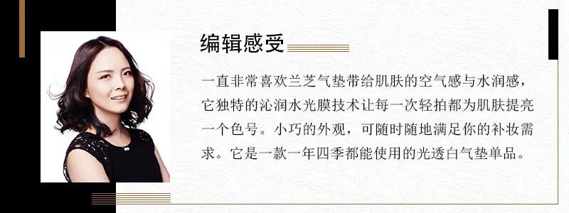 轻轻按压气垫,在脸上轻轻拍合,较为轻薄的粉质即刻贴合于肌肤,它修饰毛孔的效果非常好,丝绸般的柔滑质地可以完全遮盖住肌肤细小瑕疵,妆后的肌肤更显白皙净透。