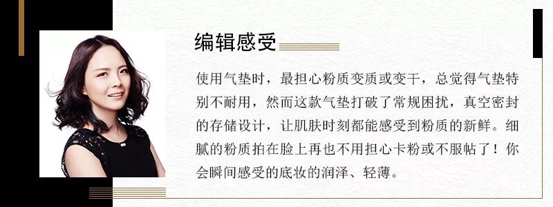 土豪金的边框与白色镜面盒身,让气垫本身变得高大上。独特的真空密封内芯,表面镜面气垫,需要按压才能将粉质挤出,严格控制了粉质的品质。