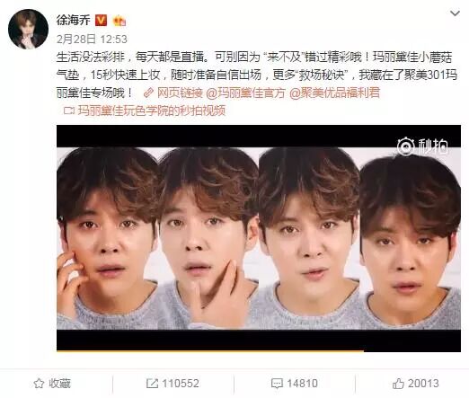 小草儿徐海乔15秒上妆秘籍:玛丽黛佳小蘑菇