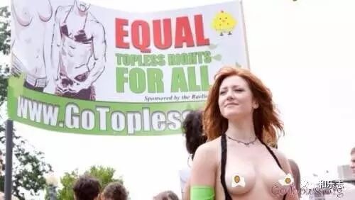 41.“GO Topless”是美国妇女争取平等权利的组织,声称妇女在公共场同样有裸露胸部的权利。在“妇女平等日”前一天,她们会裸胸走上街头,为妇女的权利抗争。