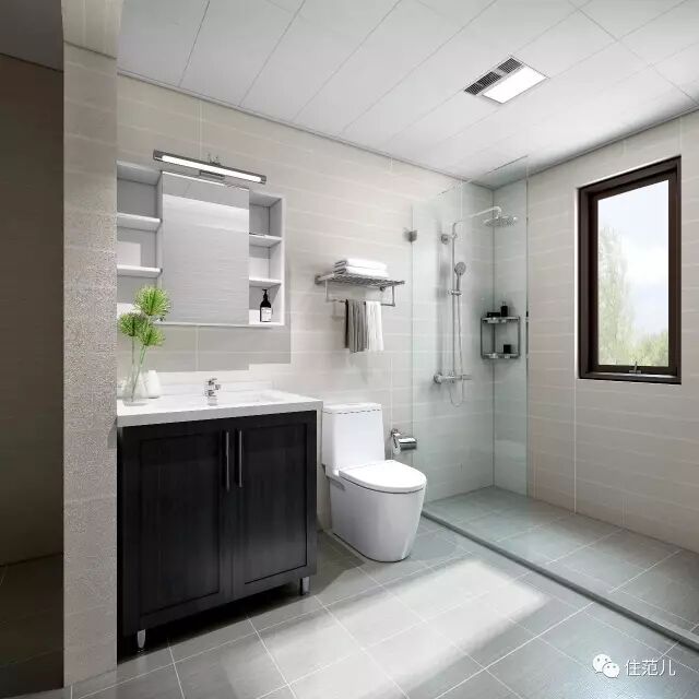 把功能性的布局确定后,再相应地进行地砖、灯光、干湿区墙面的搭配,美观的问题也就解决了。