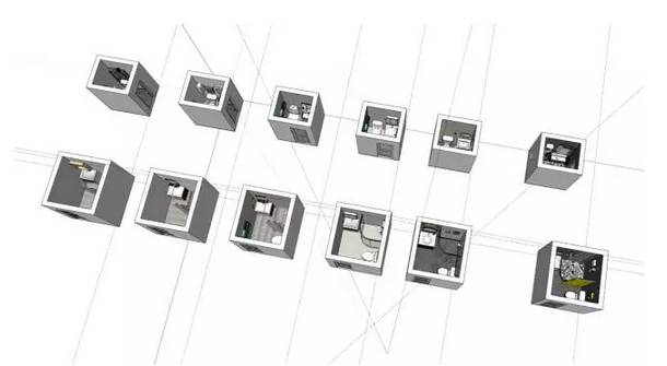 例如我们通过数据,总结出了许多基础户型的卫生间,基本能覆盖目前常见的户型。根据这些基础户型,进行更细致的设计。
