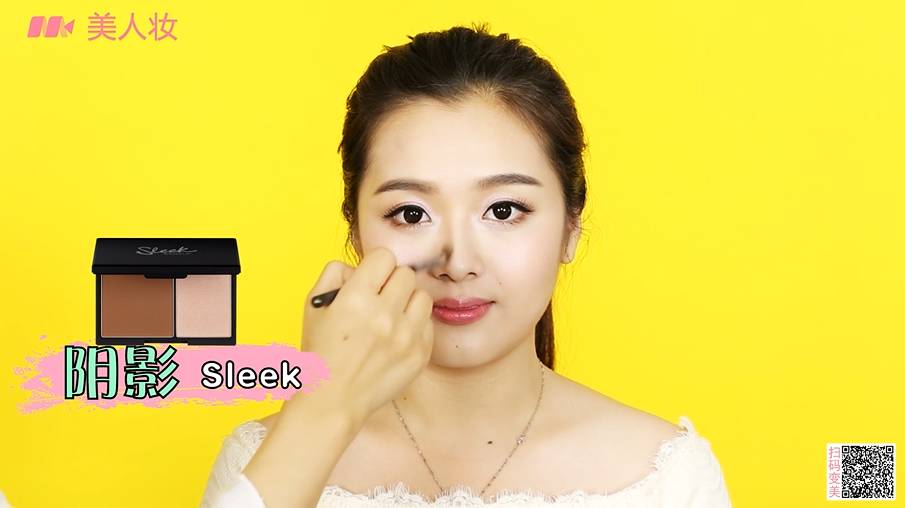 阴影,画上鼻侧影,然后在额头发际线两侧和侧脸也打上阴影,可以避免看起来脸大的视觉感,打造立体感。