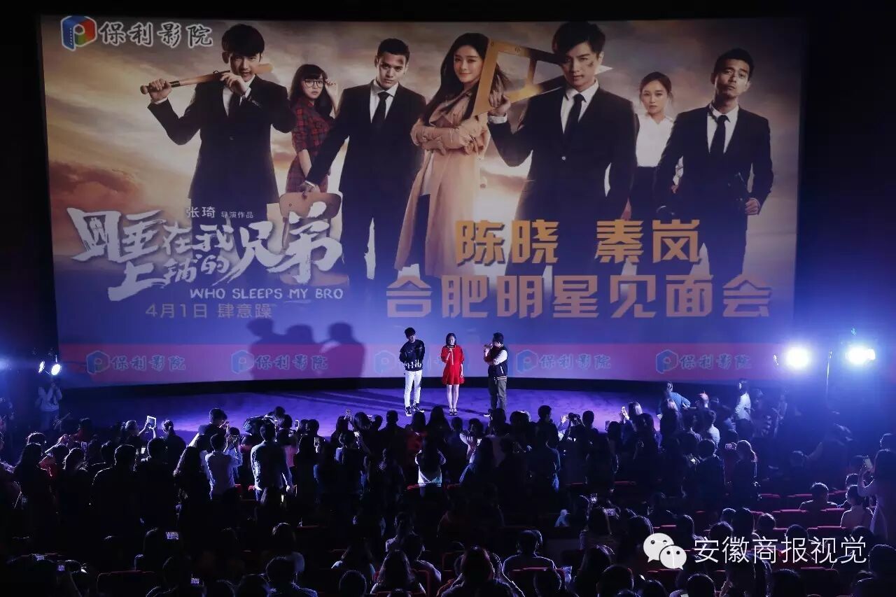 2016年4月2日,安徽省合肥市之心城,晚上7:30,一场《睡在我上铺的兄弟》电影放映结束后,主演陈晓、秦岚来到影院,与影迷进行了亲密互动。在剧中,陈晓饰演的林向宇是一位大四毕业生,在实习期间爱上了秦岚饰演的实习老师徐美心,上演了一段与陈晓现实感情生活相似的姐弟恋。身为合肥人的陈晓表示,回到自己的家乡宣传自己主演的电影感到十分开心,以后会给影迷们塑造更多的角色;秦岚则表示,《睡在我上铺的兄弟》让自己回想起自己上学时候的快乐时光,希望大家珍惜在学校的日子。见面会在一张陈晓、秦岚与影迷的集体自拍后结束。一位陈晓的影迷因过于激动,结束时在现场哭泣,迟迟不愿离开。