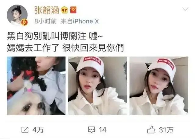 张韶涵则发狗照配文:“黑白狗别乱叫博关注。”